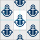 Fundo branco perfeitamente náutico e bonito com teste padrão azul da âncora no tecido que é customizável