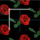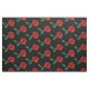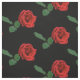 Este elegante design de tecido floral apresenta um padrão repetitivo de flores de rosa vermelha solteiro com folhas verdes sobre fundo preto puro. A ideia perfeita para jardineiros!