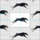 Este tecido apresenta uma reprodução do meu desenho original colorido de um pintor doberman a correr.