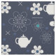 Padrão azul e branco com flores e bule.