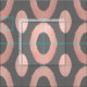 tecido de ouro e cinza com um padrão ikat geométrico. Lâmpadas cor-de-rosa feitas para dar uma aparência de ouro rosa contra um fundo de cinza.