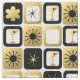 Que é preto e branco e ouro all over? É este tecido Dourado glamoroso retro. As características de design moderno do meio século uma grade de imagens sofisticadas. Há uma mistura e combina padrões de flores da modificação, de starbursts, de vidros de martini, e de estrelas impressionista em fundos pretos, brancos, e do ouro. Este design é ideal para suas celebrações acima crescidas. Trabalha para o ano novo, os casamentos, os jantares de ensaio, as festas de solteira, os despedida de solteiro, os cocktail, os aniversários, e o Natal. Peça hoje porque todo esse brilhos realmente deve ser ouro!