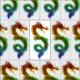 Este tecido caracteriza um teste padrão de dragões chineses coloridos arco-íris, em um fundo branco customizável.