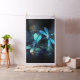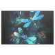 Duas libélulas transparentes, luminosas, turquesas, desenhadas artisticamente sobre fundo noturno, com algas e vagalumes luminescentes do lago. Dragonfly brilhante.