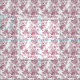 Padrão de madeira ventilado em rosa poeirento, com rosas detalhados, galhos folhosos e passarinhos perdidos em fundo branco.