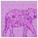 Imagens digitais mistas de um elefante contra um tecido de fundo arabesco - tons de lavanda, orquídea e roxo ametista