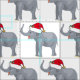 Belo tecido de Natal para elefantes com elefantes adoráveis em um chapéu de Papai Noel.