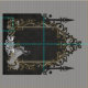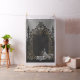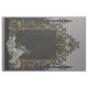 Elegância em prata e preto. Esta imagem mostra uma ilustração em preto e branco de uma estrutura de casamento com ouro intrincado e embelezamentos de prata. O quadro é adornado com padrões florais de ornamentado e um arco central. Uma noiva de vestido, segurando um buquê, fica dentro do quadro, virada para longe do espectador. O fundo é uma superfície preta texturizada, criando uma atmosfera dramática e elegante.