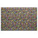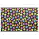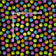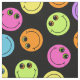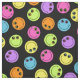 As caras alaranjadas, cor-de-rosa, roxas, verdes, azuis, e amarelas em um fundo preto cobrem este design.