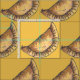 O tecido apresenta uma ilustração original de empanadas, impressa em um plano de fundo amarelo. Um favorito da comida mexicana!