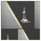 Silhueta branca do equipamento de perfuração para a exploração do petróleo em um fundo preto com prata/cinza e listra dourada/amarela.