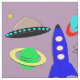 Um design branco colorido com um pequeno astronauta, homem espacial, foguete espacial, disco voador, planetas e estrelas. Impressão de novidade fabulosa disponível em vários estilos e comprimentos de tecido para atender às suas necessidades de artesanato e costura. .