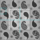 Tecido Espelho da Paisley, cinzas prateadas, preto e bran