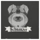 Um design preto e branco de um Schnauzer. Isso foi inspirado por uma amiga minha que ama seu cachorro fofo. Posso ver porque, estes cães têm rostos expressivos maravilhosos com traços distintamente barbudos. Há uma faixa preta e branca abaixo do rosto dos cachorros que lê Schnauzer.