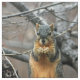 Um esquilo adorável com pele cinzenta e o estômago avermelhado que come uma porca