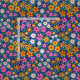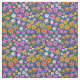 Este é um belo padrão retrorreflector de flores em cor-de-rosa, laranja, amarelo e branco com galhos e folhas verdes sobre fundo azul-marinho.