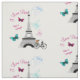 Eu amo Paris na primavera. impressão de tecido de novidade de tendências com a Torre Eiffel, borboletas bonito, bicicletas de vintage e marcas de selo de correio. Um gráfico temático de Paris giro disponível em vários estilos e comprimentos de tecido para atender a todas as suas necessidades de artesanato e projeto de costura. Clique na imagem abaixo para ver produtos e designs similares do tema Paris