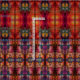 Cor d'água colorida, branca, romântica, simbólica, pintura contemporânea de cor d'água em vermelho brilhante, preto, fúcsia, roxo, amarelo, azul, branca para uma lenda espiritual, mística celta de Alessandro Lumini 1989