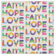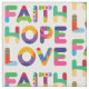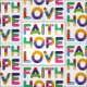 Um padrão de texto decorativo único e colorido Faith Hope Love. Belo tecido para qualquer um. Se necessário, use a opção "Personalizar a imagem" para posicioná-la em um produto ou para alterar a cor do plano de fundo. Aproveite, comprar 1, divirta-se e seja feliz. #fé #esperança #amor #cor #texto #tipografia #tecido #artesanato