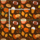 Um padrão de queda divertido com folhas e bagas de ouro, bolas de futebol, abóboras, bebidas de café de especiarias de abóbora e donuts também! São todas as coisas que adoro na temporada de outono. Este design personalizado é fofo em tecido para o fazer das suas criações de costura à mão! Você pode mudar a cor do fundo marrom para qualquer cor que você preferir. Parece bom em tons de preto, creme, branco, blues e mais cores. Altere o tamanho do padrão para torná-lo adequado às suas necessidades. Excelente para decoração de outono, faça do seu animal de estimação um bandana de outono ou outro projeto de artesanato.