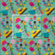 O tecido feliz do parque de diversões das épocas, excelente para tão muitos projetos, um tecido caçoa amará, caracteriza carros abundantes, montanhas russas, rodas de ferris, passeio do teacup, bandeira das bandeiras, popsicles, e algodão doce todos em um fundo do azul do aqua!