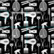 Tecido Ferramentas de Salão de Cabelo Preto e Branco
