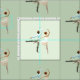 No balé Romeo e Juliet, os amantes novos dançam junto em um pas gracioso de deux, mantendo esta pose elegante em um dedo do pé com pé traseiro outstretched. A bailarina e seu sócio são vistos aqui em um fundo verde pálido que complemente as cores pastel delicadas dos trabalhos de arte, mas você pode personalizar este tecido dançarino-temático escolhendo sua própria máscara do fundo como você prefere.