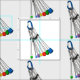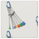 Um conjunto de fios de escalação de rochas brilhantemente coloridos, espalhados em um padrão de triângulo. O fundo de muitos produtos com esta design é uma cena nublada do céu.