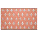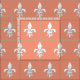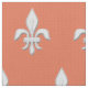 Tecido num padrão clássico de pulgas de lis (fleur-de-lis) em branco suave sobre um fundo cor-de-rosa claro/cor de pêssego