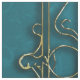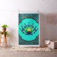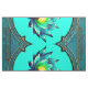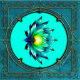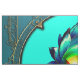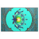 Flor de Elegância, Lotus Místico. A flor de lótus é simétrica e extremamente detalhada, com suas pétalas em tons harmoniosos de lacre, azul e verde. O centro amarelo brilhante da flor adiciona um sotaque vibrante e destaca sua posição central. A design combina a beleza natural com a decoração de ornamentados, criando uma imagem harmoniosa e elegante que é simultaneamente moderna e tradicional.