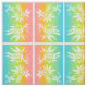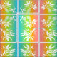 Design tropical brilhante e colorido apresenta flores de maracujá estencis sobre um fundo pastel de arco-íris.