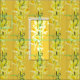 Bonito amarelo, ouro amarelo, laranja e verde, ilustração de arte do linho torácico, um espigão de girassol silvestre. Pintura à mão aquosa, impressa num tecido amarelo-padrão repetido. Ideal para projetos de costura floral amarela. Pintura a aquarela original por Sarah Trett para www.mylittleeden.com