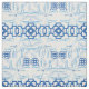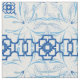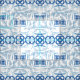 Padrão de Chinoiserie Azul e Branco com Flores Geométricas e Botânicas e Folhas.