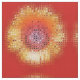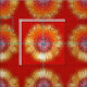 Um belo abstrato de mosaico de girassol de verão com um fundo vermelho laranja.