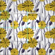 Ilustração perfeita do estilo retrô com flores amarelas e folhas azuis sobre fundo branco