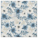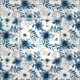 Num fundo azul claro, há um padrão adorável de azul escuro e flores beges com bagas de ouro.