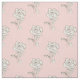Um bonito tecido floral cor-de-rosa, cor-de-rosa, decorado com uma mão de rosa branca desenhada com caneta e tinta sépias. Tecido adorável para um vestido ou decoração de quarto!