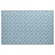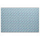 Este tecido apresenta um impressão de ilustrações geométricas limpas e modernas de flores com um toque retró. As flores estão em tons de azul e creme e colocadas sobre um fundo azul claro.