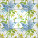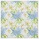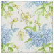 Um tecido floral macio e bonito, decorado com flores lilás azuis e columbinas amarelas desenhadas em caneta e tinta e pintadas em aquarela.