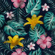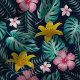 Tecido Flores De Marinho Tropical E De Hibisco Rosa Flora