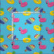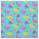 Este tecido apresenta um padrão de piscina divertida e colorida flutua na forma de um flamingo cor-de-rosa, um abacaxi amarelo e um picolé de arco-íris todos contra um fazer azul brilhante de fundo, perfeito para seus projetos de costura temidos do verão.