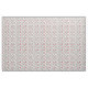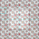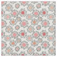Este tecido tem um design moderno do século médio de flores feitas de círculos em tons de rosa, amora, bege e e linhas pretas.