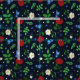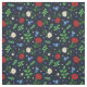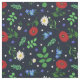 Tecido azul escuro com um teste padrão floral popular sueco das papoilas, das margaridas de oxeye, das violetas, dos miosótis, e das folhas do olmo.