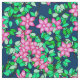 Espadilha de flores cor-de-rosa e folhas verdes moles sobre fundo azul escuro / marinho