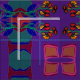 Este é um dos meus desenhos animados, espelhados para o tecido. Púrpura colorida / verde-marinho / laranja / e amarelo. Este tecido de algodão também está disponível em outros tecidos.
