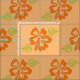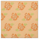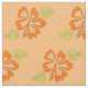 O tecido apresenta linhas de flores laranja hibiscus com folhas verdes, impressas em fundo laranja claro. Criado de uma ilustração do marcador original.