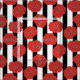 Tecido Flores Vermelhas de Papoula com Listras Pretas e B