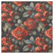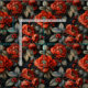 Flores vermelhas e bagas com folhas de cinza em fundo preto.