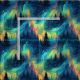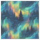 Um padrão sem costura, que apresenta as tonalidades azul-esverdeadas e amarelas da aurora borealis, com silhuetas de pinheiros espalhadas por toda parte. A design capta a beleza etérea das luzes nortes contra um pano de fundo sereno da floresta.