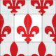 Tecido com símbolo vermelho de pulgas (flor-de-lys ou flor de lírio), mardi gras design sobre fundo branco